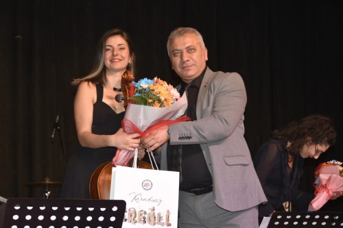 Belediye Başkan Yardımcısı Gökhan Günay, eşsiz bir müzik ziyafeti sunan orkestra üyelerine teşekkür ederek, çiçek takdiminde bulundu.