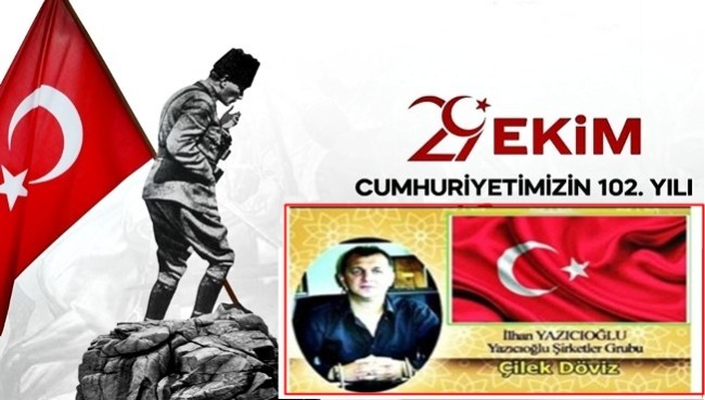 Karadeniz Ereğli'de iş insanı İlhan Yazıcıoğlu (Çilek Döviz), Cumhuriyet Bayramı kutlama mesajı yayınladı.