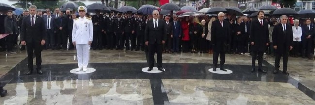 İlk olarak 09.15'te Atatürk Anıtı önünde bir araya gelen Ereğlililer, yağmura rağmen çelenk sunma törenine iştirak ettiler.