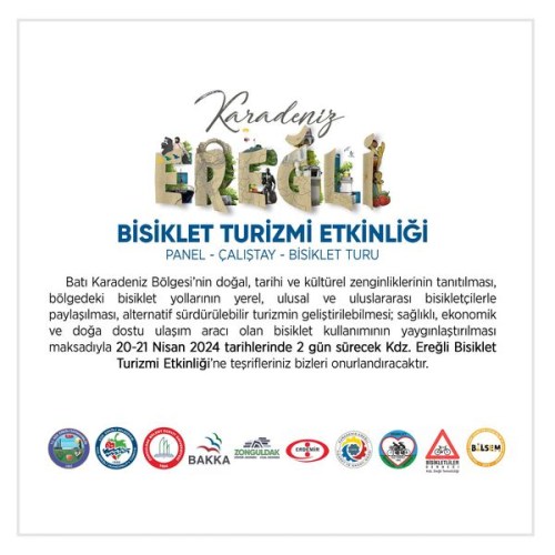 Batı Karadeniz Bölgesi'nin doğal, tarihi ve kültürel zenginliklerinin tanıtılması, bölgedeki bisiklet yollarının yerel, ulusal ve uluslararası bisikletçilerle paylaşılması, alternatif sürdürülebilir turizmin geliştirilebilmesi; sağlıklı, ekonomik ve doğa dostu ulaşım aracı olan bisiklet kullanımının yaygınlaştırılması amacıyla 20-21 Nisan tarihlerinde Kdz. Ereğli Bisiklet Turizmi Etkinliği gerçekleştirilecek.