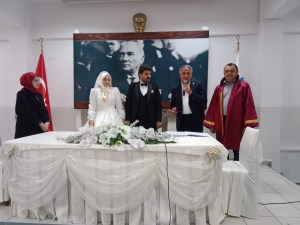 Ak Parti Kdz Ereğli Kurucu İlçe Başkanımız Muhammet Köse&Yasemin Köse çiftinin kızları Elifnaz ile Sultan&Mehmet Sarıkaya çiftinin oğulları Süleyman'ın Kdz Ereğli Eski Bağlık Düğün Salonunda düzenlenen nikah törenine katıldı.