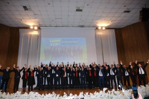 Toplantıda İlk olarak Atatürk’e ve şehitlere hitaben saygı duruşu ardından İstiklal Marşı okundu.