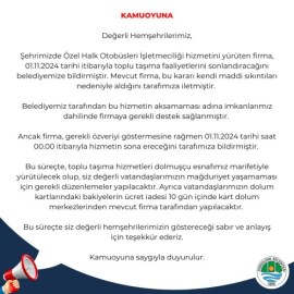 Zonguldak Belediyesi'nden kamuoyuna duyurulur.