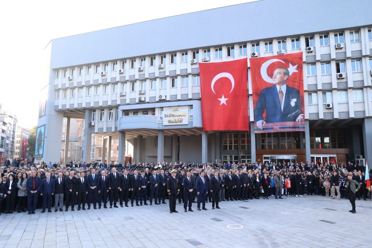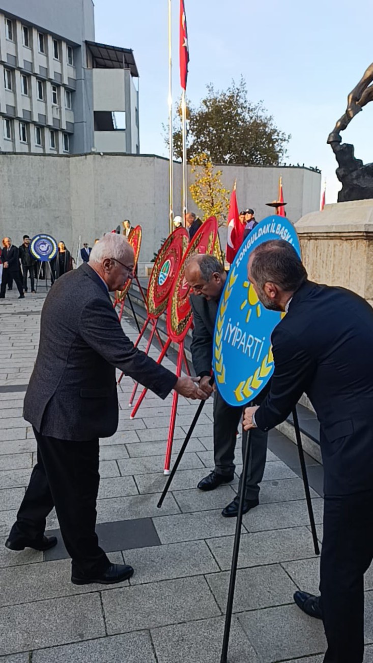 '' Cumhuriyetimizin kurucusu büyük önder Gazi Mustafa Kemal Atatürk'ün vefatının 87.Yıldönümü dolayısıyla Zonguldak Valiliğinin düzenlediği program çerçevesinde Valilik önünde düzenlenen çelenk sunma törenine arkadaşlarımızla birlikte katılarak çelengimizi koyduk.