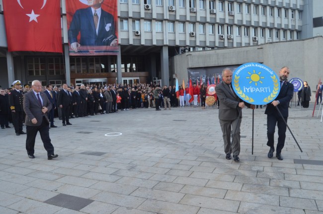 ERKMEN, '' Cumhuriyetimizin kurucusu büyük önder Gazi Mustafa Kemal Atatürk'ün vefatının 87.Yıldönümü dolayısıyla Zonguldak Valiliğinin düzenlediği program çerçevesinde Valilik önünde düzenlenen çelenk sunma törenine arkadaşlarımızla birlikte katılarak çelengimizi koyduk.''