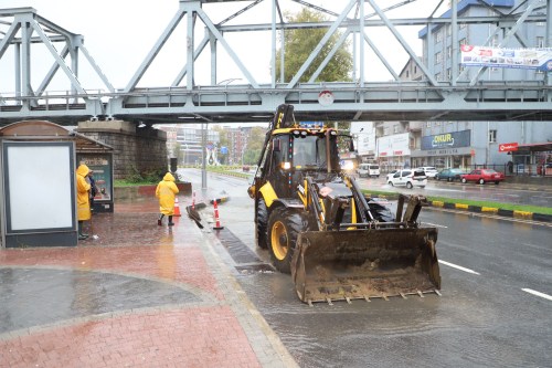 ''İlimizde etkili olan şiddetli yağışlar nedeniyle ekiplerimiz teyakkuz halini aldı. Kuvvetli sağanak yağış nedeniyle meydana gelen su baskınlarına kısa sürede müdahale eden ekiplerimiz tüm tedbirleri alarak çalışmalarını sürdürüyor.''