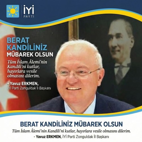 İYİ Parti Zonguldak İl Başkanı Emekli Vali Yavuz Erkmen Berat Kandili'ni kutladı.