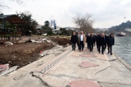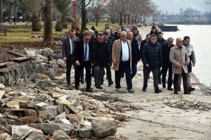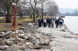 Başkan Posbıyık, beraberinde başkan yardımcıları, sorumlu müdür, teknik ekip ve peyzajcılarla birlikte sahil boyunca adım adım incelemelerde bulundu, yapılacak çalışmaları yerinde planladı.