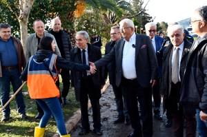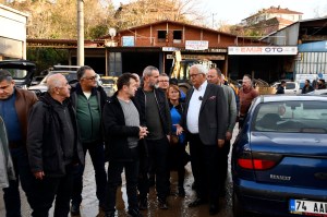 Pazar günü yaşanan afette Pençes deresinin taşması nedeniyle büyük zarara uğrayan çarşı esnafı, kasırgaya dönen fırtına nedeniyle zarar gören sahil bandındaki işletmeler ile balıkçıları ve ardından sel baskınına uğrayan sanayi esnafını ziyaret eden Belediye Başkanı Halil Posbıyık, el birliğiyle yeniden ayağa kalkacaklarını söyledi.