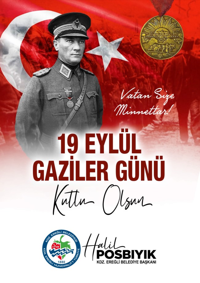 Kdz. Ereğli Belediye Başkanı Halil Posbıyık, Gaziler Günü nedeniyle kutlama mesajı yayımladı.