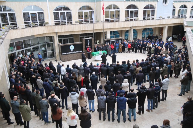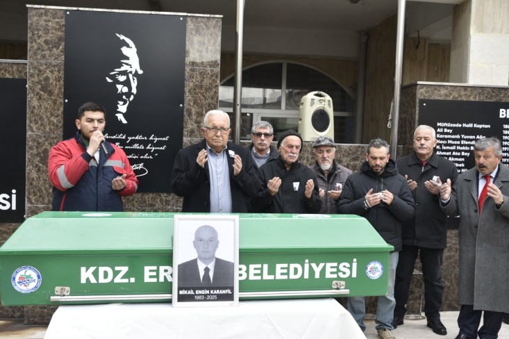 Kdz. Ereğli Belediyesi İşletme ve İştirakler Müdürlüğü personeli Mikail Engin Karanfil (42), belediye önünde düzenlenen törenin ardından cenaze namazı sonrası son yolculuğuna uğurlandı. Belediye Başkanı Halil Posbıyık, “Çalışkan, dürüst bir arkadaşımızı kaybetmenin acısını yaşıyoruz. Ailesine ve sevenlerine başsağlığı diliyorum” dedi.