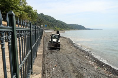 Ayrıca özel araçla kumsal temizliği yapılıyor. Bölgede nadir olarak kullanılan kumsal temizleme aracıyla taşlar temizleniyor, kumsal, çıplak ayakla yürümek isteyenler için cam kırığı gibi kesici materyallerden arındırılıyor.