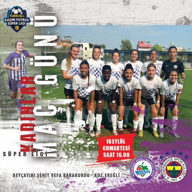 Turkcell Kadın Futbol Süper Ligi’nde mücadele eden Kdz.Ereğli Belediyespor, 4. Hafta maçında 16 Eylül Cumartesi günü Şehit Vefa Karakurdu (Beyçayırı) Stadı’nda milli maç arası öncesinde Fenerbahçe’yi ağırlıyor.