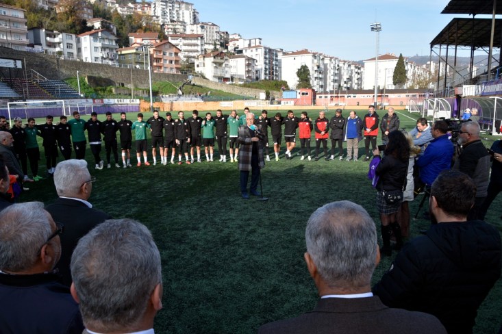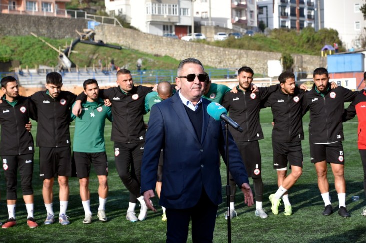 Çünkü: bütün Ereğli halkı birleşmiş vaziyette. Ereğli’de resmi konular falan konuşulmuyor. Ereğli Belediyesinden falan bahsedilmiyor, kaymakamlıktan bahsedilmiyor. Ereğli Belediyespor konuşuluyor her yerde. En küçüğünden en büyüğüne kadar. Bu ortamı getiren tabiki teknik heyetimiz ve siz değerli futbolcularımız. Özellikle yönetim kurulumuz. Akın katı ve ekibi büyük fedakarlıklar yaparak. Bu isler kolay olmuyor. Her fedakârlığı yapmaya devam edeceğiz. Bu birlik ve beraberliği götürmek zorundayız. Arkadaşlar; futbolcu konusunda sizler kadar bilgili değilim ama hepiniz bir yıldız gibi parlıyorsunuz. Takım olarak da marka olmaya başladınız. İnanılmaz sözler duyuyoruz. Bütün gözler sizde. Bu sizde ters etki de yaratıyor. Büyük bir baskı var üzerinizde. Bu seriyi kurtarmak için. Ben buradan yönetim kurulu üyelerimize ayrı ayrı şükranlarımı sunuyorum. Futbolcular, teknik heyet ve taraftarlarımıza ve yerel basınımıza yarı ayrı şükranlarımızı sunuyoruz.