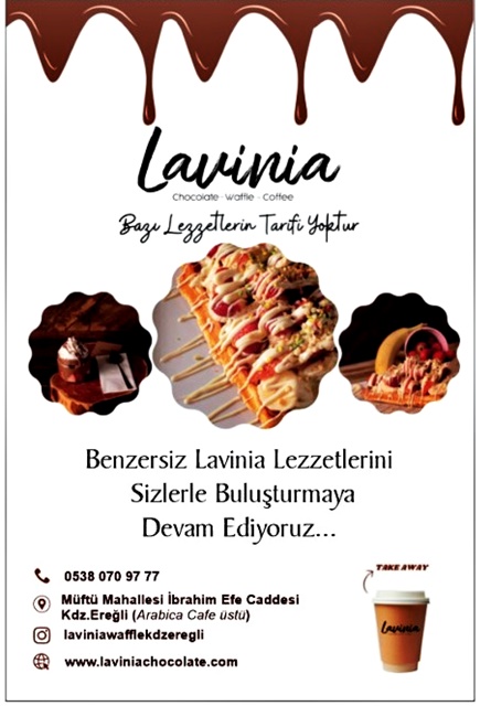 Çeşitli illerde şubesi bulunan Karadeniz Ereğli ilçesinde. 11. şubesiyle 16 Aralık 2023'te açılışı gerçekleştirilen Lavinia – Chocolate – Waffle – Coffee'ın benzersiz lezzetleri yoğun ilgi görmeye devam ediyor...