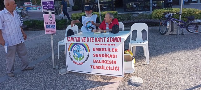 Birleşik Emekliler Sendikası Balıkesir Şube Temsilcisi Recep Kurtuluş ve yönetim kurulu üyeleri, açmış oldukları stant etkinliğin de, emeklileri sendikaya üye olmaya davet ettiler.