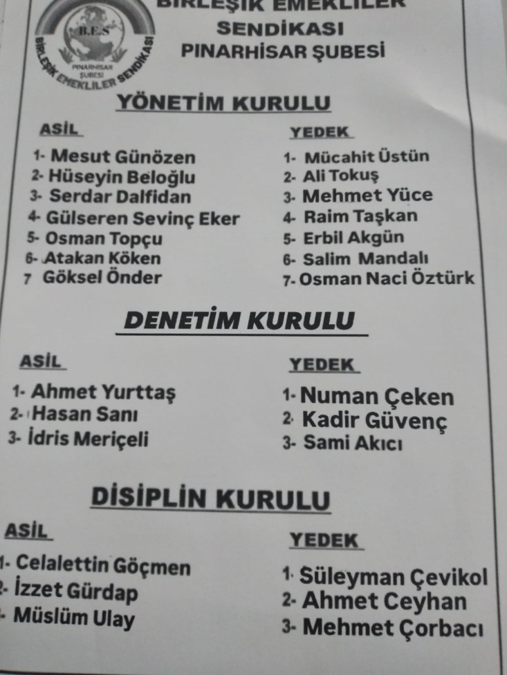 Birleşik Emekliler Sendikası, PINARHİSAR Şubesinin 1. Olağan genel kurulu, Pınarhisar Belediyesi düğün salonunda gerçekleşti.