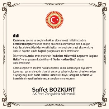 AK Parti Zonguldak Milletvekili Saffet Bozkurt 5 Aralık Kadın Hakları Gününü kutladı.