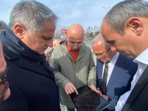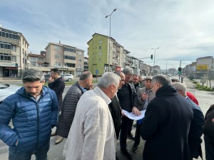 Kavşaklar başta olmak üzere alanda incelemelerde bulunan Bozkurt ve beraberindekiler yol güzergahında yapılabilecek çalışmalara ilişkin istişare etti.