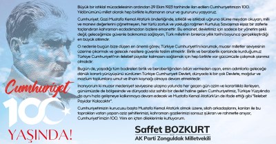 AK Parti Zonguldak milletvekili Saffet Bozkurt Cumhuriyetin 100 yılını kutladı .