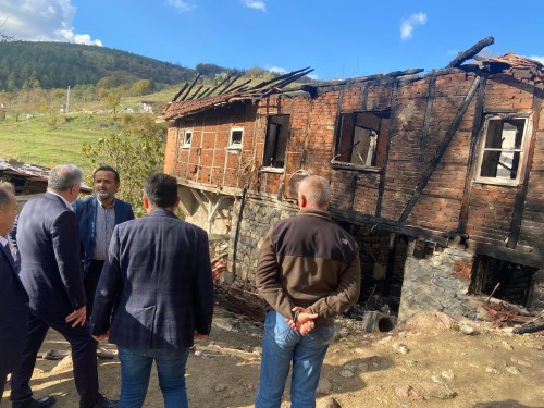 8 Kasım Cuma günü çıkan yangında evleri tamamen kullanılamaz hale gelen Ergenekon ailesini bugün köylerinde ziyaret ederek geçmiş olsun dileklerini ileten Bozkurt., Hasbeyler Köyü Muhtarımız Hasan Duman'dan yangın ile ilgili bilgi aldı.