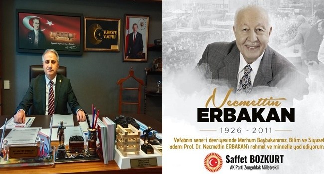 AK Parti Zonguldak Milletvekili Avukat Saffet Bozkurt; '' Vefatının sene-i devriyesinde Merhum Başbakanımız, Bilim ve Siyaset adamı Prof. Dr. Necmettin ERBAKAN'ı rahmet ve minnetle yad ediyorum.''