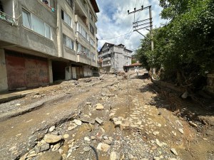 Devrek İlçe Başkanı Yaşar Bükrü selden en çok etkilenen yerlerden olan Devrek ilçesi Karşıyaka Mahallesinde incelemelerde bulunuyor.