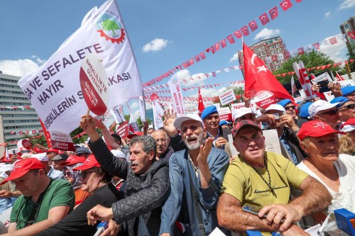 Türkiye genelinde farklı illerden gelerek sabahın erken saatlerinden itibaren meydanı doldurmaya başlayan emekliler, taleplerini dile getiren sloganlar attı.