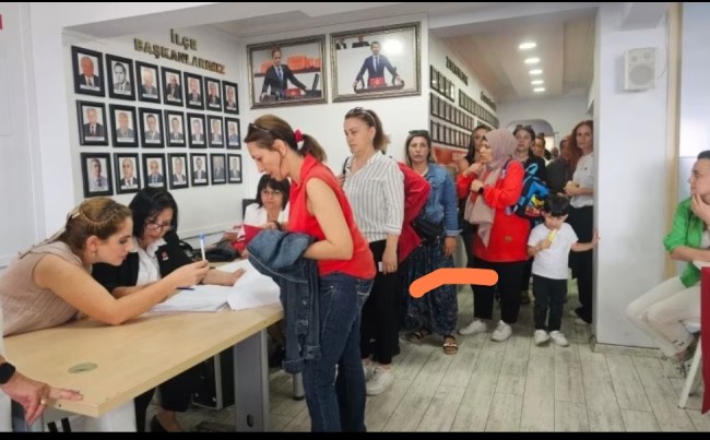 Bu süreçte kadın üyeler, CHP İlçe Binasını hınca hınç doldurması, dışarıda da uzun kuyruklar oluşturması yapılması beklenen seçimi zor duruma düşürdü.