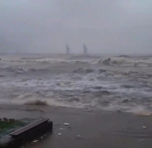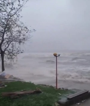 Kıyıya sürüklenen geminin parçası, limanın beton duvarlarına çarptı, kıyıdaki amfi tiyatro zarar gördü.