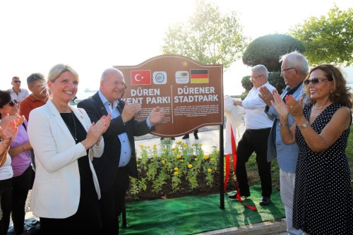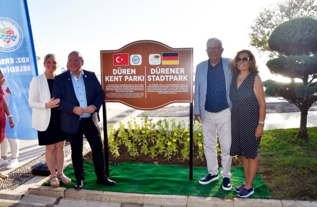 Kdz. Ereğli Belediyesi’nin Kardeş Kent Protokolü bulunan Almanya’nın Düren şehrinde açılan Kdz. Ereğli Meydanı’nın ardından Ereğli’de de Düren Kent Parkı açılışı yapıldı. Parkın açılışı için Düren Belediye Başkanı Frank Peter Ullrich, Belediye Başkanı Eşi Iris Ullrich, Belediye Başkanı Özel Kalemi Mr. Sebastian Eich, Belediye Basın Danışmanı Mr. Dirk Zirke, Yeşiller Partisi Meclis Üyesi Nermin Ermiş ve Kardeş Şehir Temsilcisi Sabine Kieven Kdz. Ereğli’ye geldi.