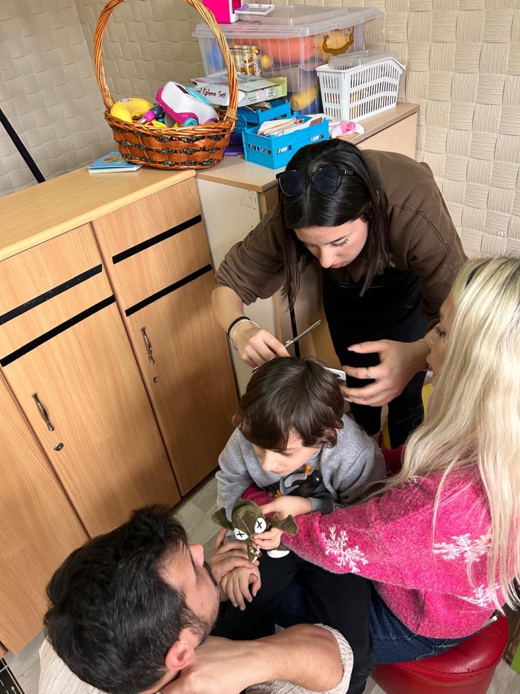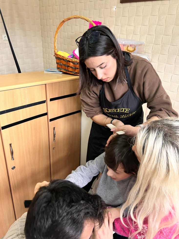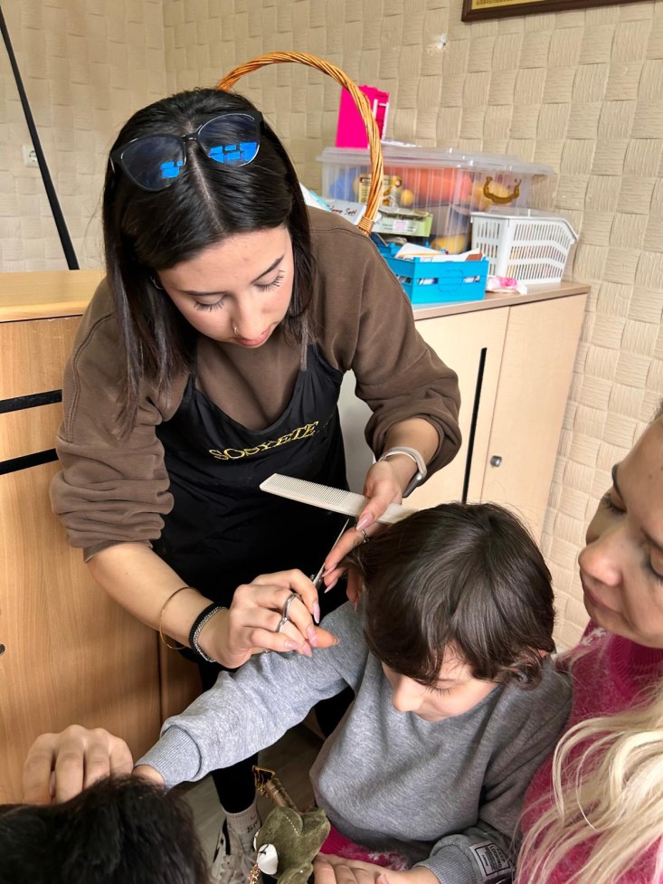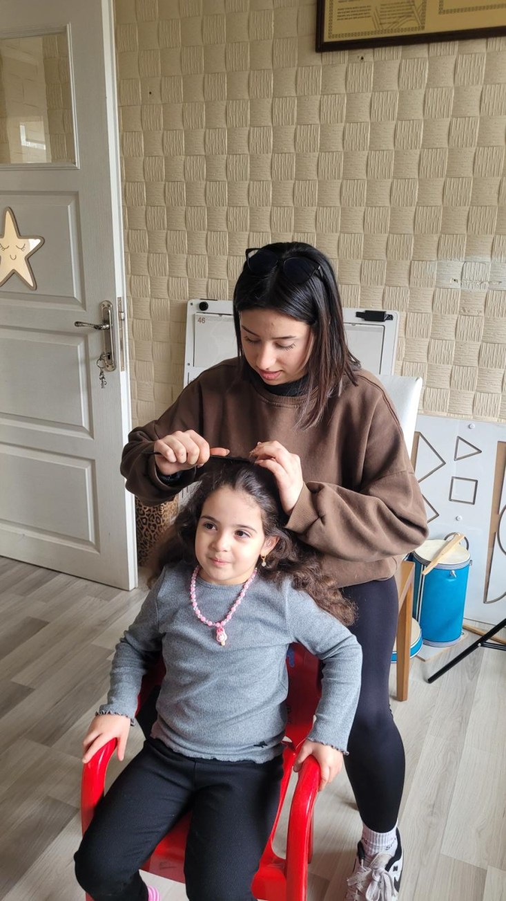 Etkinliğimizde, çocuklarımız kuaför deneyimini eğlenerek yaşadı. Alanında uzman kuaförlerimizin sabrı ve sevgisi sayesinde saç kesimi çocuklar için keyifli bir aktiviteye dönüştü. Kız çocuklarımızın saçları özenle örülerek onlara kendilerini özel hissettiren güzel dokunuşlar yapıldı.