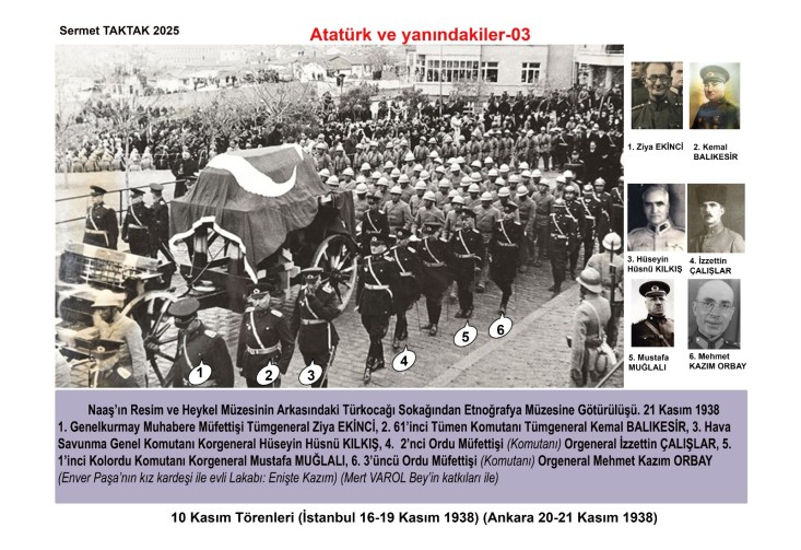 Mustafa Kemal Derneği üyesi Albay Sermet TAKTAK, Ordu ilinde 10 Kasım 2025 günü “Atatürk’ü Anma Günü’nde 100’e yakın Atatürk’ün Cenaze törenine ilişkin fotoğraflar Ordu Altınordu Belediyesinde sergileyecektir.