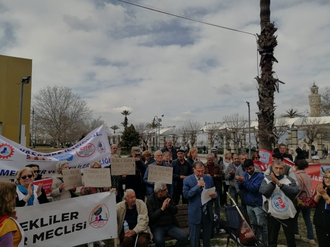 Emekli Sendikaları ve platformlar İzmir'de bir araya gelerek basın açıklaması yaptılar.