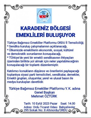 ( TÜRBEP ) Türkiye Bağımsız Emekliler Platformu, Karadeniz Bölge illeri ve tüm emeklilerimizle Orduda buluşuyoruz.