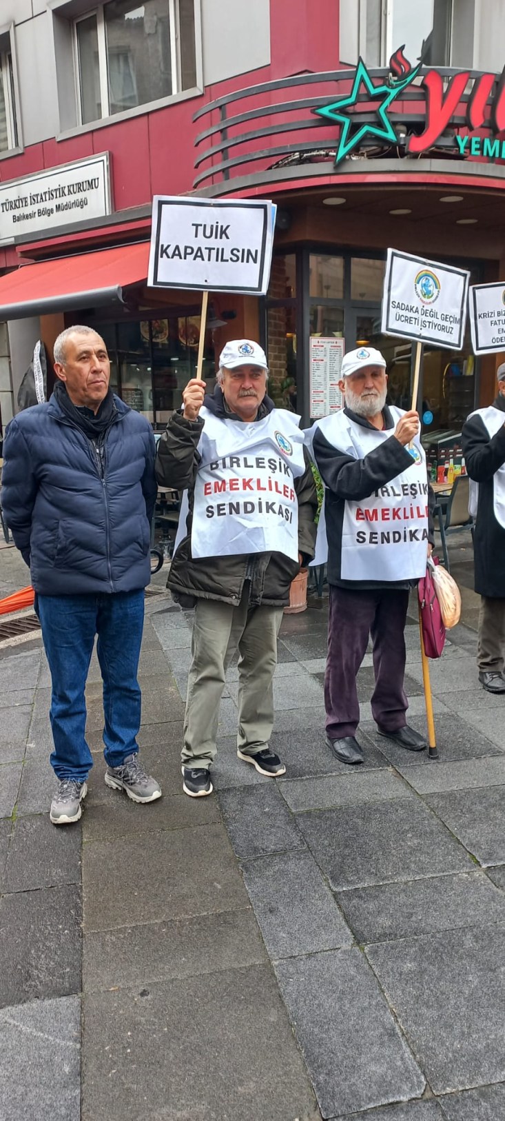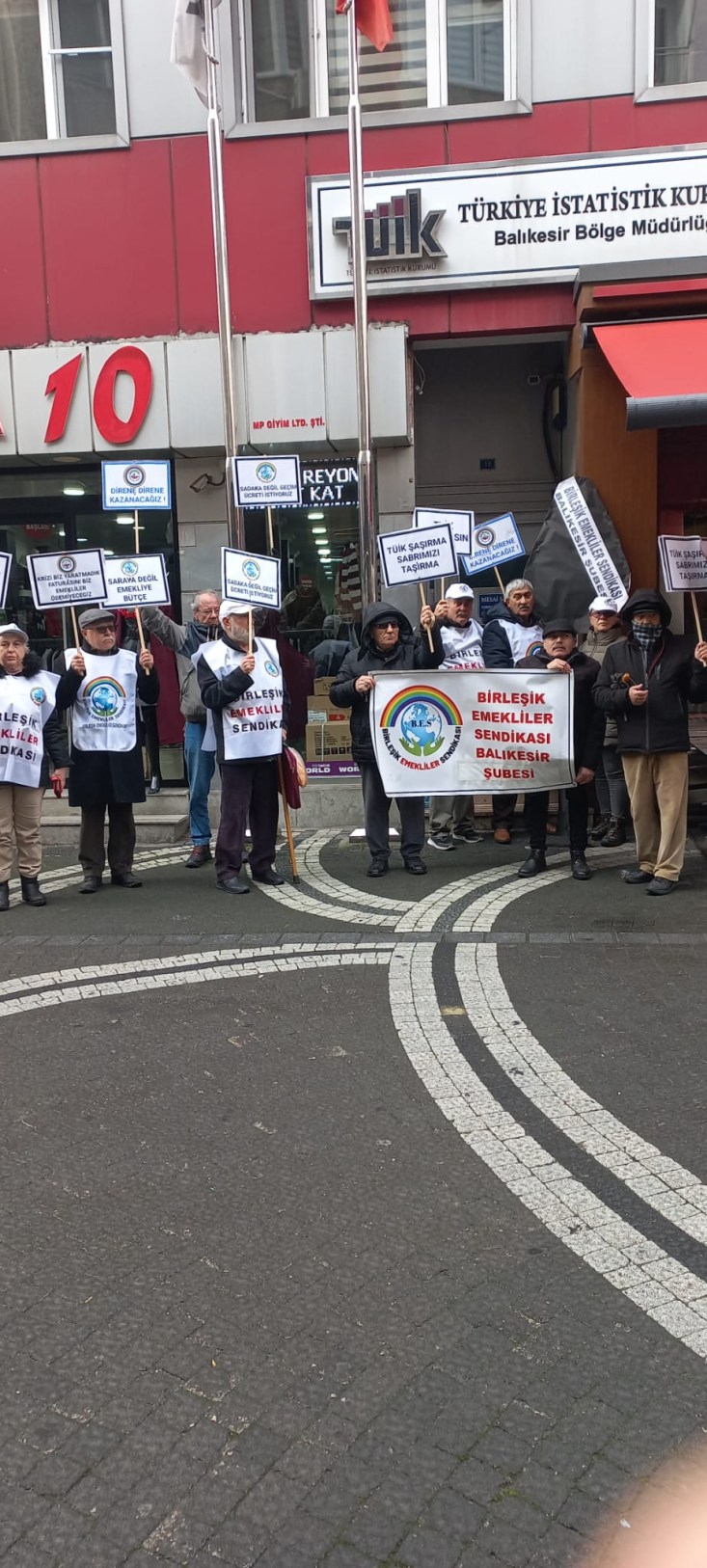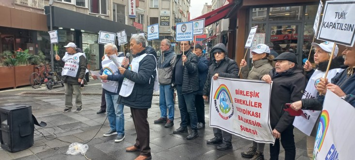 Birleşik Emekliler Sendikası Balıkesir Şubesi TÜİK önüne siyah çelenk bırakarak TÜİK'i protesto etti.