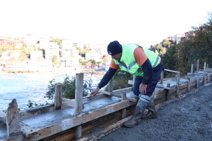 Kapuz Plajı üst mevkiinde kalıp yapımı çalışmaları sürdürülüyor.