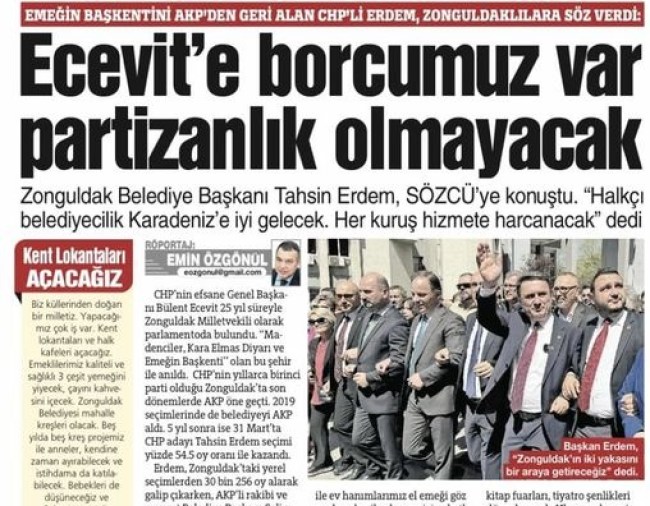 ''Zonguldak Belediye Başkanımız Sn. Tahsin Erdem’in Sözcü gazetesi röportajı
