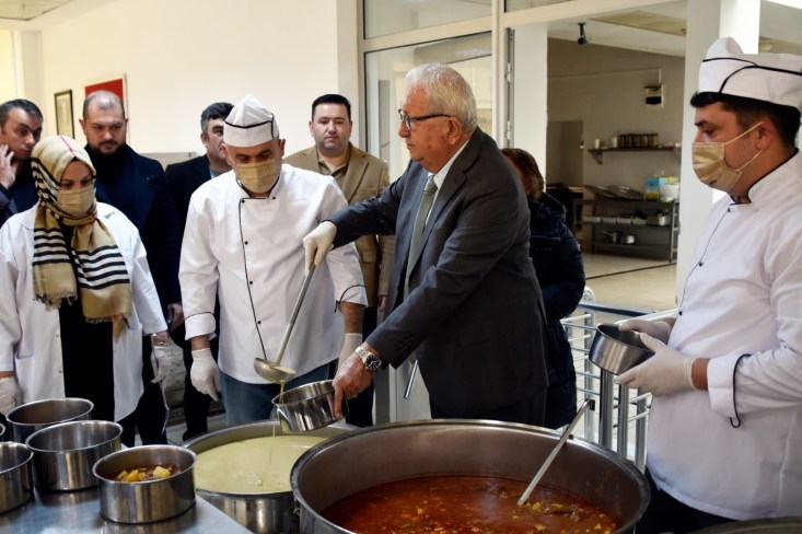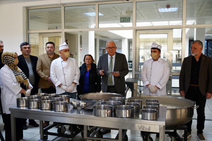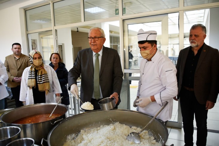 Belediye Başkanı Halil Posbıyık, göreve geldiği 1994 yılından itibaren her Ramazan ayında geleneksel hale getirdiği ihtiyaç sahiplerinin evlerine sıcak aş uygulamasının startını, bu Ramazan ayında da belediye yemekhanesinde verdi. Belediye başkan yardımcıları, CHP ve AK Parti belediye meclis üyeleri ve daire müdürlerinin katılımıyla sefer taslarını bol kepçe dolduran Başkan Posbıyık, “Ramazan ayı boyunca ihtiyacı olan tüm ihtiyaç sahiplerinin sofrasında olacağız” dedi.