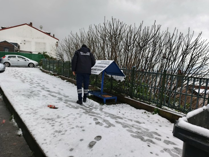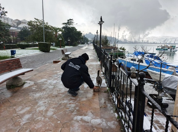 Kar yağışı nedeniyle yiyecek bulmakta zorlanan sokak hayvanları için park ve yeşil alanlara mama bırakıldı, kanatlı hayvanlar için Atatürk Anıtı ve sahil bölgesine yem bırakıldı.