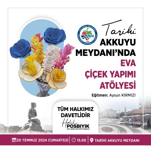Kdz. Ereğli’nin en eski sokaklarından biri olan Akarca Mahallesi’nde yer alan Tarihi Akkuyu Meydanı’nda, mahallede yaşayan kadınlar tarafından kurulan Yöresel El İşi Ürünleri Pazarı, saat 11:00’den itibaren açık olacak. Saat 15:00’de Eğitmen Aysun Kırmızı tarafından EVA Çiçek Yapımı Atölyesi gerçekleştirilecek.