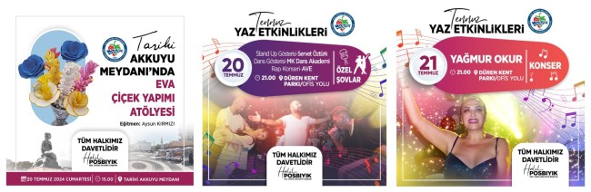 Kdz. Ereğli Belediyesi yaz etkinlikleri bu hafta sonu da devam edecek. Cumartesi akşamı Servet Öztürk’ün Stand Up gösterisi, MK Dans Akademinin Dans Gösterisi, AVE’nin Rap konseri olacak. Pazar günü akşam ise Yağmur Okur konseri sizlerle olacak. Belediye Başkanı Halil Posbıyık, etkinliklere halkı davet etti.