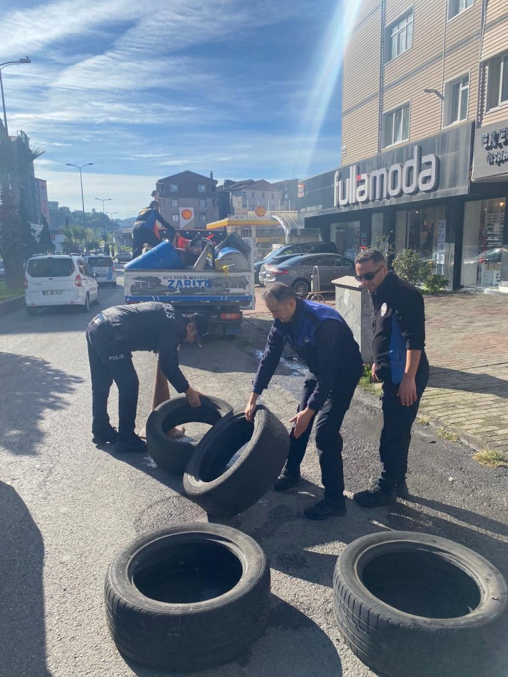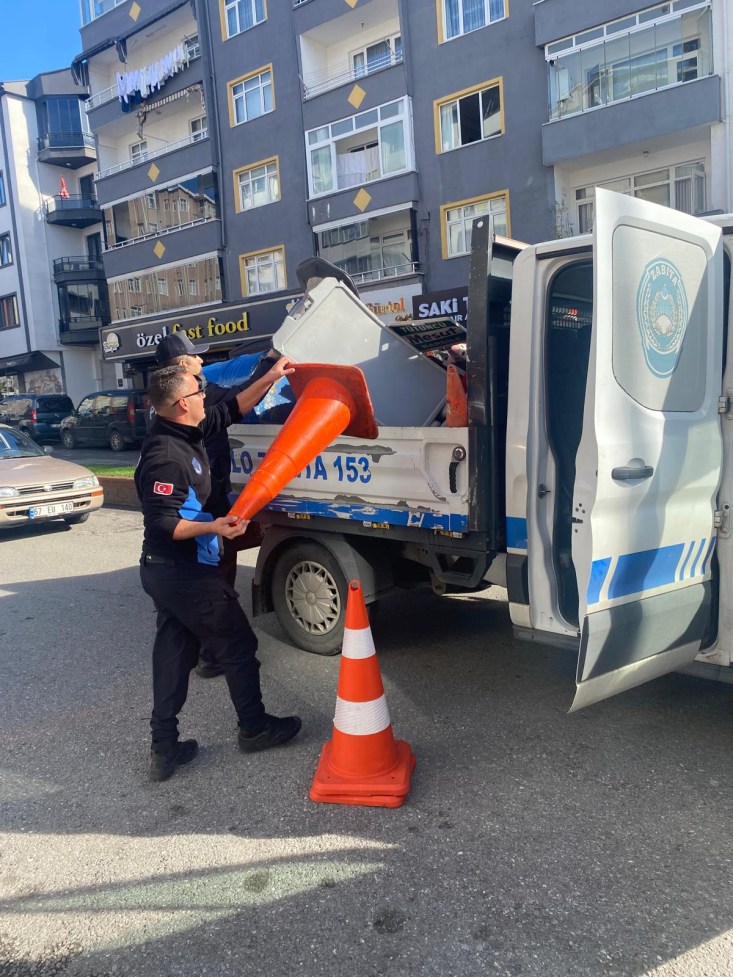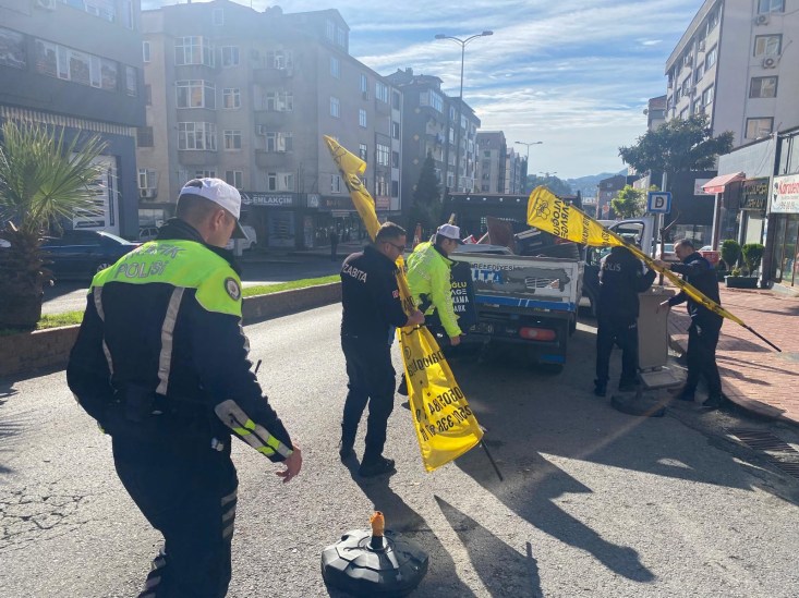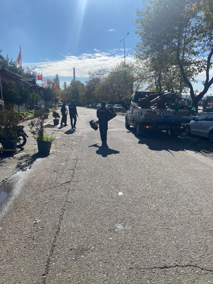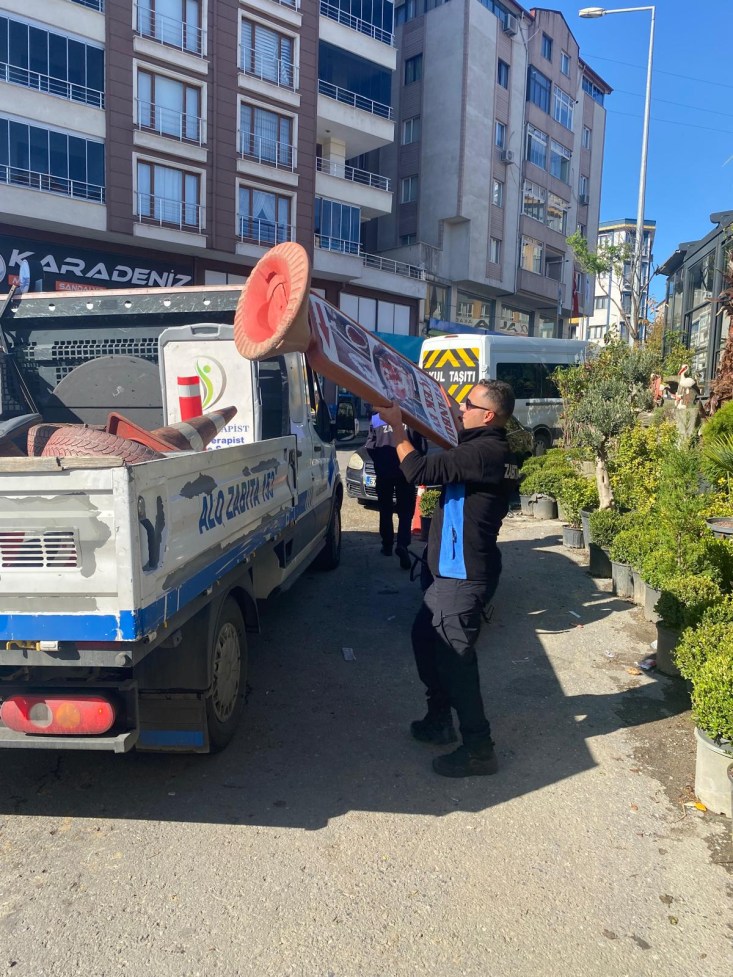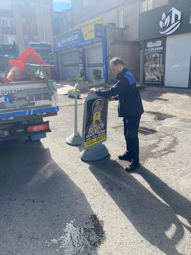İlçe emniyet müdürlüğüne bağlı polis ekiplerinin de destek verdiği operasyonda kaldırımlara konan plastik duba, reklam flama ve tabela, lastik ve benzeri işgal malzemeleri tek tek toplandı.