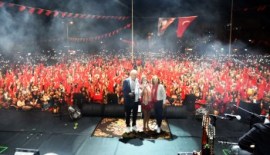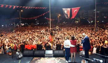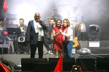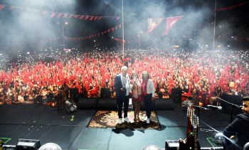 Elinde Türk Bayrağıyla şarkılarının yanında marşlar da söyleyen ünlü sanatçı 2 saat boyunca Ereğlilere unutulmaz bir gece yaşattı.