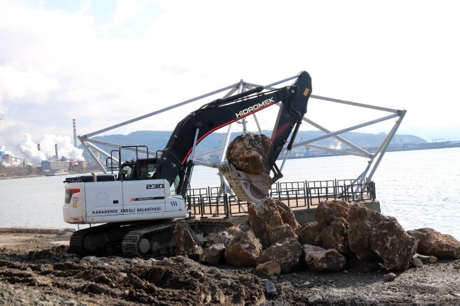 19 Kasım’da yaşanan doğal afette büyük zarar gören Kdz. Ereğli sahili, Belediye Başkanı Halil Posbıyık’ın önderliğinde ilmek ilmek yeniden örülüyor. Yıkılan yerler onarılıyor, sahil boyu dalgalara karşı taşlarla güçlendiriliyor.