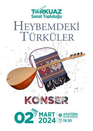 Bu arada TURKUAZ SANAT TOPLULUĞU 02 Mart 2024 tarihinde herkesi HEYBEMDEKİ TÜRKÜLER Konserine davet ediyor.