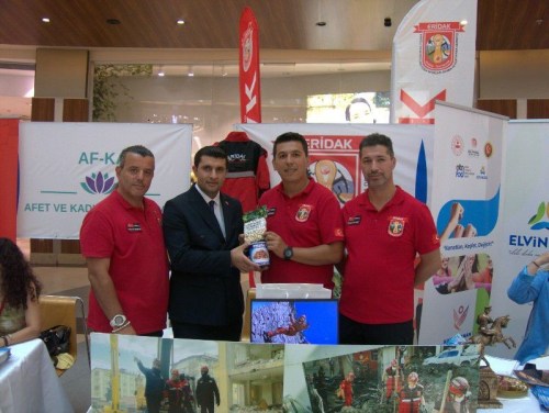 Eridak standını ziyaret eden İçişleri Bakan Müşaviri Hatice Atan ve Vali Yardımcısı Talat Tabur dernek hakkında bilgi alarak, ERİDAK ekibini Türkiye’de meydana gelen büyük afetlere katılımından dolayı tebrik ve teşekkür ettiler.
