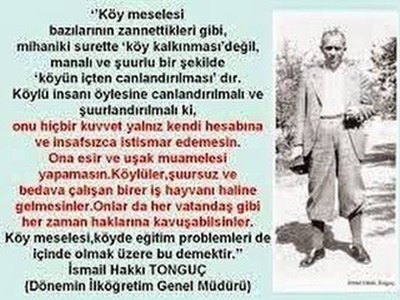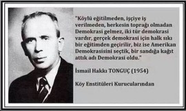 Değerli Türk Eğitim Bilimcisi, Köy Enstitüleri Mimarı ve Dönemin İlköğretim Genel Müdürü İsmail Hakkı Tonguç’u saygı, minnet ve rahmetle anıyoruz. Mekanı cennet olsun. Keşke Köy Enstitüleri siyasete kurban edilmeseydi. Şimdi çok güçlü, üreten, eğitimli ve aydın bir Türkiye Cumhuriyeti olurduk.