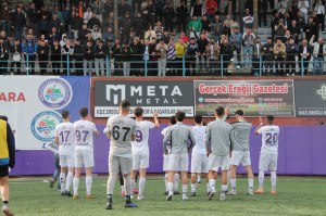Maç sonu taraftarlar maçta penaltı atışından yararlanamayan Yılmaz Coşkunçay’ı tribüne davet ederek üçlü çektirdi.