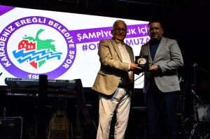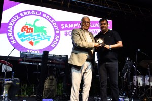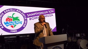 Ve inşallah önümüzdeki festivalde onları takımlar hepsi de Petrol Ofisinden, ünlü markalardan milyon dolarlarca sponsorluk alıyorlar. Bizim arkamızda böyle bir güç yok. Maalesef sanayide ilk 500’e giren şirketler var 5 tane. Bir lira destek gördüğümüz yok. Sizlerden, emekçilerden, iş adamlarından hepinizden Allah razı olsun. Sizler sayesinde gençlerimizle yürütüyoruz. Çünkü onlar bizim geleceğimiz. Spor olayından vazgeçersek, kötü alışkanlıklara gitmelerinden korkuyoruz. Kdz.Ereğli Belediyespor Kulübü olarak geçlerimize sahip çıkıyoruz. Hepinize Ereğli halkı adına şükranlarımı sunuyorum.’’ dedi.